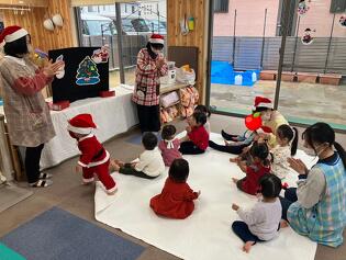デイサービスの利用者さんとクリスマス交流をしました。 ジングルベル♬に合わせて、利用者さんと一緒に鈴を鳴らして楽しみました。 ジングルベルの後はお楽しみのプレゼントタイムです。 園児たちは貰ったおかしを自分で作った赤色のブーツに嬉しそうに入れていました。 デイの皆さん、子どもたちをいつもかわいがってく...