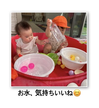 熱中症アラートが出ていない日は園庭で水遊びをしています。 小さな星組のお友だちも水遊びをはじめました。 パシャパシャ、じゃあじゃあ、気持ちいいね。 水遊びの後はシャワーで体を洗い、きれいな服に着替えます。 終わったあとのお茶、美味しいね~(≧▽≦)