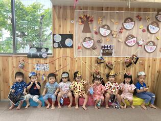 今年もみんなで、夏まつりを行いました。 金魚すくいや、お面屋さんにかき氷屋さん、ゆらゆらおばけをやっつけろ!など、 子どもたちはいろんなお店を回り楽しみました。 給食やおやつも、今日は特別に「おまつりメニュー☆」。 また一つ、みんなで夏の思い出ができました ♪
