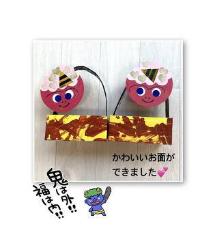 毎日寒い日が続きますね。 2月3日の節分に向けて、子どもたちが鬼のお面と豆入れ(黄色の箱)を作りました。 節分当日はデイサービスのおじいちゃん、おばあちゃんと一緒に豆まきです! 今年は何色の鬼がくるのかな?