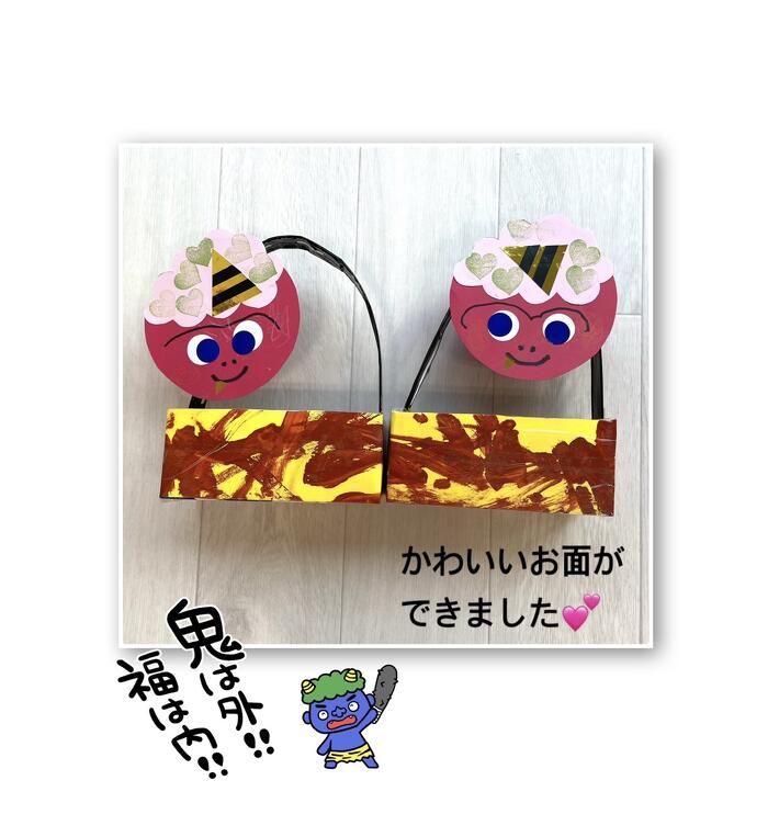 2026. 1 .24 節分に向けて 2026年01月24日(土) 毎日寒い日が続きますね。 2月3日の節分に向けて、子どもたちが鬼のお面と豆入れ(黄色の箱)を作りました。 節分当日はデイサービスのおじいちゃん、おばあちゃんと一緒に豆まきです! 今年は何色の鬼がくるのかな?