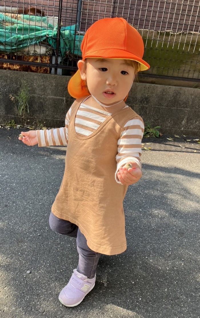 2023.10.27 秋 2023年10月27日(金) 秋晴れの中、子どもたちは落ち葉を踏んだり、どんぐりを拾ったりして秋の自然を楽しんでいます。 “”ママにお土産~”と木の実や猫じゃらしを保育園まで大事に持って帰ってきて、 お迎えに来たママに はいどうぞ とっても嬉しそうでほっこりします。 昼間と朝夕の寒暖差がありますが体調管理に気を付けながら過ごしていきたいと思います。 室内はハロウィンに向けていろいろ制作中です。お楽しみにぃ Happy Halloween
