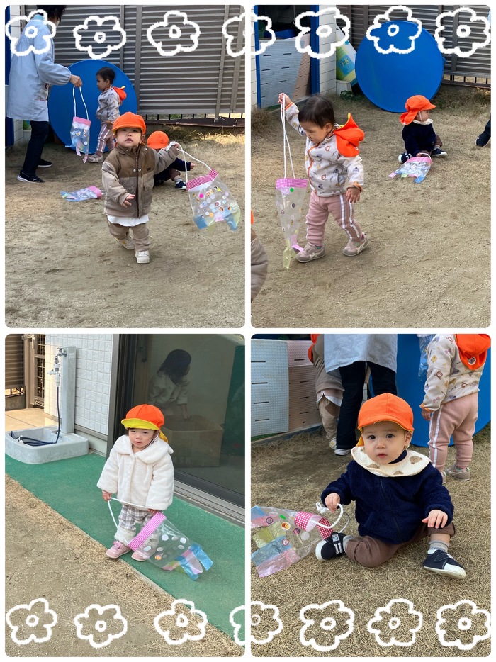 2025.1.18 凧作りと凧あげしたよ! 2025年01月18日(土) お正月遊びを楽しんでいます。 自分でシールを貼って飾り付けをした凧を飛ばし、園庭をかけ回りました。 暖かい日は戸外で元気いっぱいに遊んでいます。