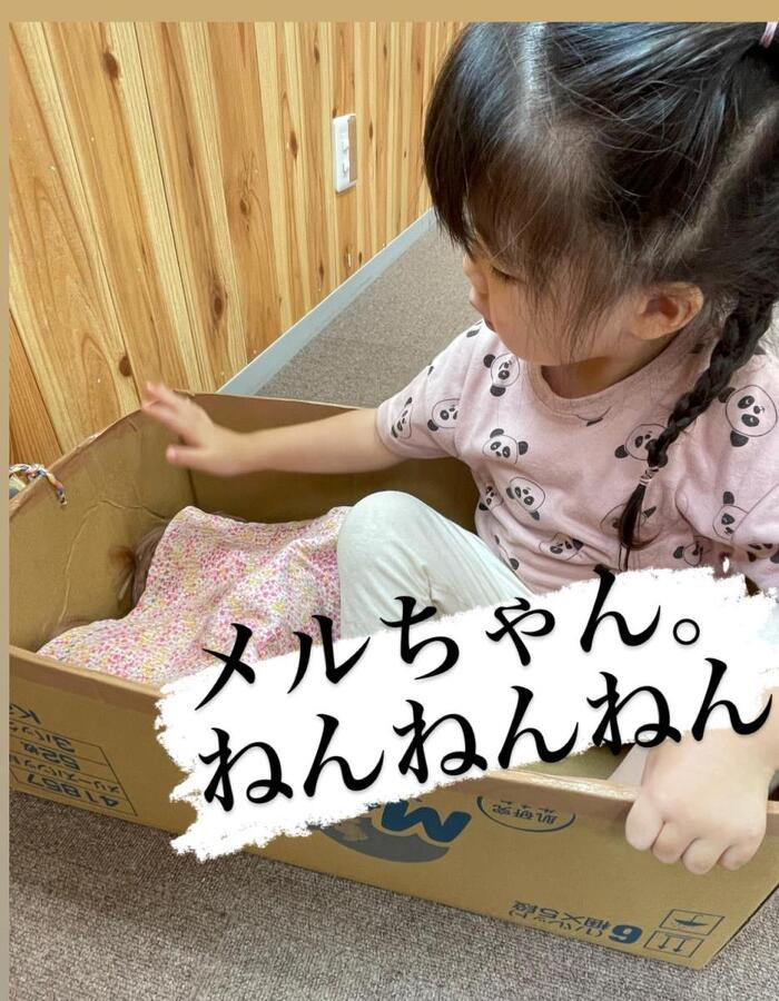 箱を斜めに傾けて、パパのまねっこかな?
