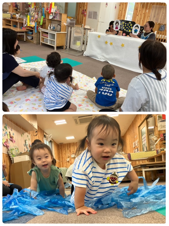 2025. 7. 7 七夕会☆ 2025年07月07日(月) みんな楽しみにしていた七夕会☆ 七夕のお話のペープサートを見たり、「きらきらぼし」「たなばたさま」の歌を歌ったり、 最後は天の川を渡るハイハイレースをして楽しみました ♪