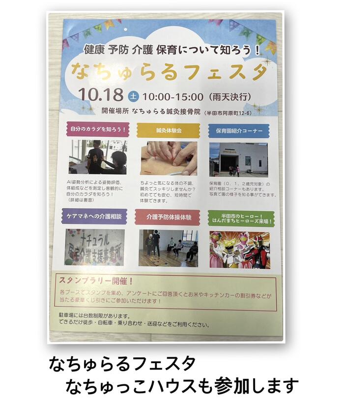 2025. 10 .16 なちゅらるフェスタ ♪ 2025年10月16日(木) 18日土曜日は、なちゅらるフェスタ! なちゅっこハウスも参加します。 保育園の紹介、写真展示、魚釣りごっこなどを準備して お待ちしています ♪