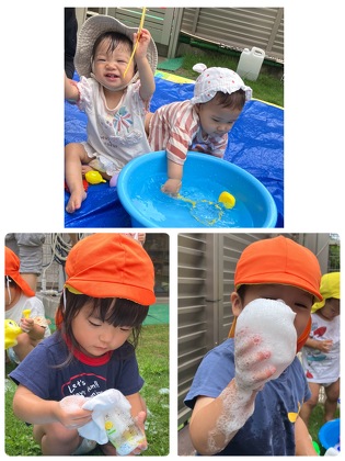 雨や熱中症警戒アラート発令中でなかなか出来なかった水遊び。 今週はお天気に恵まれ2歳児は泡遊びや水遊び、0歳児は水遊びを楽しみました。 シャワーを浴びサッパリしたら水分補給もしっかりね! トウモロコシを頂いたので2歳児さんが皮を剥くお手伝いをしてくれて、 おやつに美味しくいただきました ♪