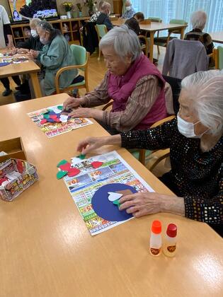 冬の工作がはじまりました。赤、緑、白、この3色で何を作っているかというと、、、クリスマスツリーです。 よく見るとハートの形を少しずつずらして貼られています。この並べ方をお好きなように考えたり、クリスマスプレゼントの話をしながら作っています。完成するのが楽しみです。