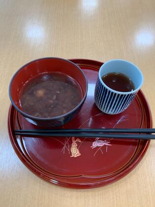 先日、鏡びらきをしました。 おやつの時間にぜんざいを食べていただきました。とても寒い日が続いているので温まっていただけたのではないかと思います。程よい甘さが好評でした。