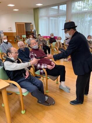 なちゅらるへ二度目のマジックショーに来ていただきました! マジックの“たかけん”さんです。本名は、“高倉健”さんではないそうです(笑) 利用者さんも素敵な笑顔でマジックに参加していました★
