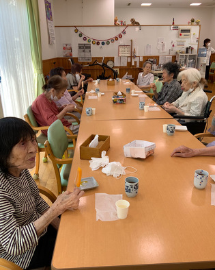 先週は、夏祭り週間で日替わりでゲームやおやつを変えて利用者様に楽しんで頂いています。 ゲームなど盛り上がっていました。 おやつも利用者様と一緒に作りました。 皆さん、美味しそうに召し上がれていました。