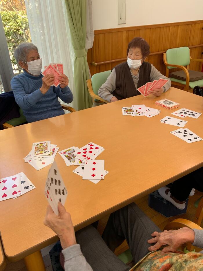 食後にトランプをして、とてもよろこんでくださいました。