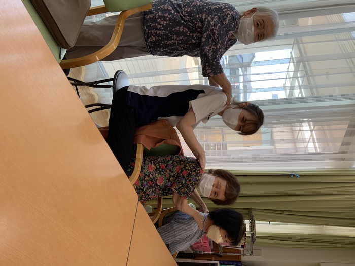 仲の良い利用者さんで肩もみをされています。