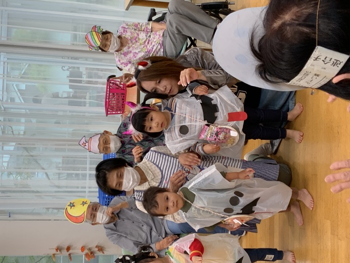 ハロウィンイベント 2024年10月29日(火) 今週は、ハロウィン週間という事でなちゅっこハウスの子供達が遊びに来てくれました。 利用者様が、子供達にお菓子を手渡しされたりして一緒に過ごされています。 子供達と一緒に過ごす利用者様の姿がとても微笑ましかったです。