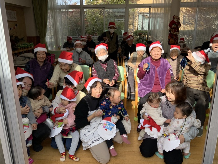 クリスマス交流 2024年12月23日(月) なちゅっこ保育園の子供達と一緒にクリスマス交流をしました。 子供達と一緒にクリスマスを楽器を使って歌われていました。 子供達や利用者さんが楽しそうに過ごされていました。