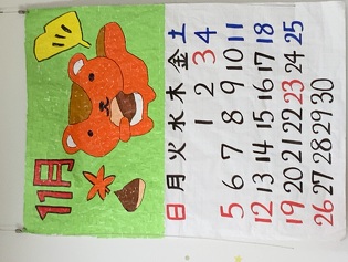 11月の貼り絵のご紹介です。 今月はリスでした。作成中はクマかな? イヌかな?とみなさんおっしゃっていましたが なんとか可愛く完成しました。 イチョウやモミジもありますが、急に寒くなってきましたので体調の異変など注意してみていきます。