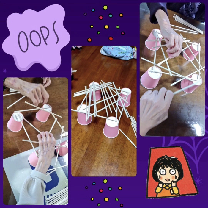 紙コップを4つ置き30秒間割り箸を載せていき、乗せた割りばしの本数を競うゲームです。