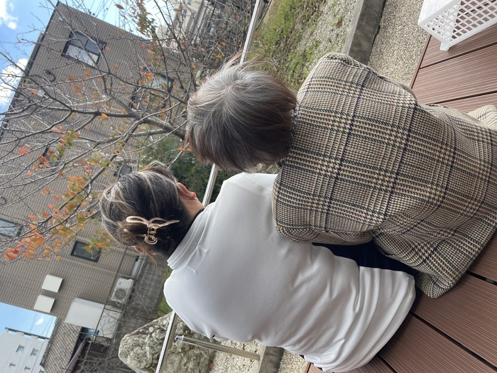 桜の木が紅葉してきたのでひなたぼっこを利用者さんとしました。だんだん寒くなってきて太陽のありがたさを実感しました^_^
