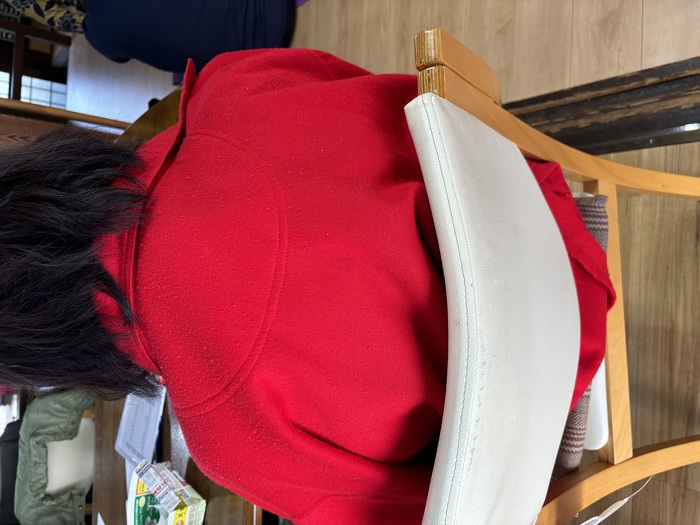 ご利用者さんの真っ赤なコート!なかなかこの色を着こなせる方はいないと思います!いくつになってもおしゃれは大切ですね!