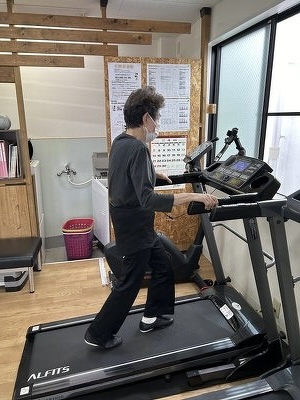 足に錘が付いてます。 この状態で足上げを10回行います。 しかも、上げる時間下す時間を設定してます。 翌日は筋肉痛が出る方がほとんど。 辛い運動ですが、頑張ってやってくれています。