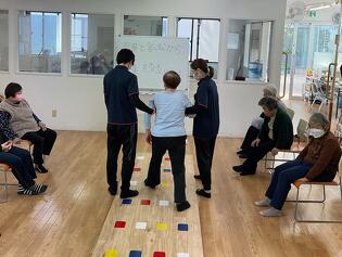 デュアルタスクトレーニングを行いました 「赤」と言いながら、黄色を踏んで行く と言うような 課題に取り組みました しっかり取り組まれ脳が活性化しました