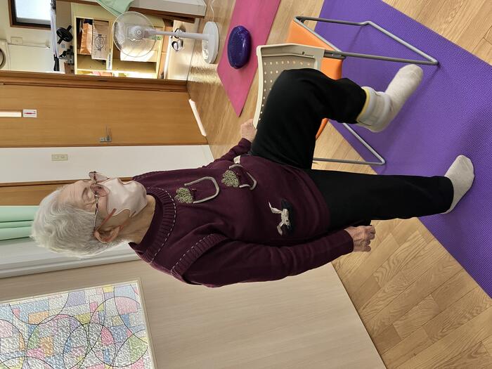 足首に1㎏の重りを巻いて10回✖️2セット足の上げ下げをしました。