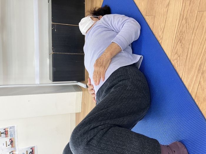 ドローイン 2024年11月29日(金) 腹式呼吸中の1枚。 お腹がプックリと膨らんでいるの分かりますか? 息を吸って下っ腹に空気をどれだけ貯められるかで体幹の強さが分かります。 こちらの方、始めは下っ腹に空気を貯めるやり方も分かりませんでしたが、今ではしっかりと膨らんでいてかなり体幹が強くなりました。