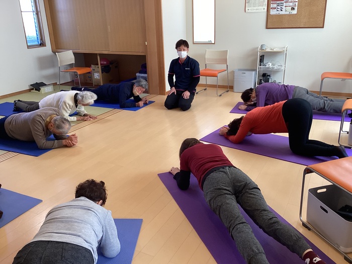 定番のプランク 2025年01月24日(金) THE体幹といえばのプランク。 定番ですが正しい姿勢で行うのは意外に難しく、間違ったやり方をすると腰を痛める原因になります。 正しいやり方を指導して、正しい姿勢ができるように頑張っています。