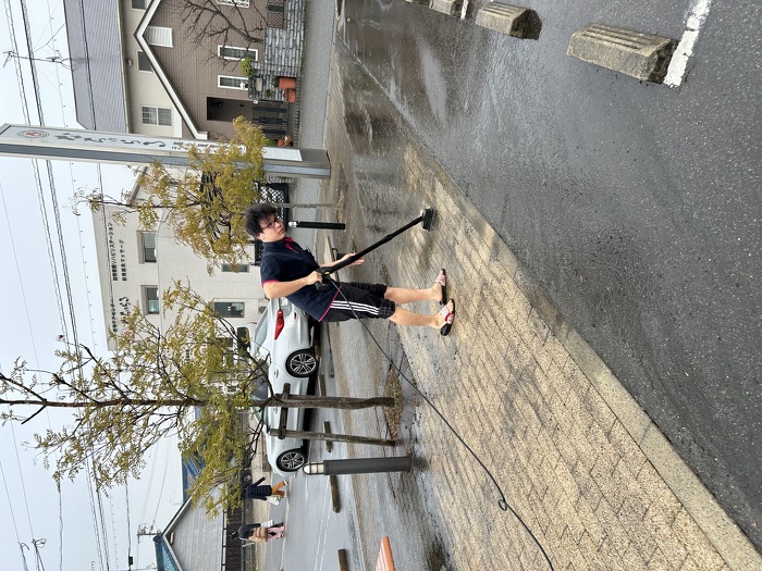 細川先生ありがとうございました 2025年03月12日(水) 細川先生が今月で退職となります。 本日が最後の通所Aでの教室でした。 最後ということで駐車場の掃除をしてくれました。 手前の色と奥の色を比べると一目瞭然でとても綺麗になりました。 残念ながら途中で雨が降ってきたので、中途半端になりましたが感謝です。
