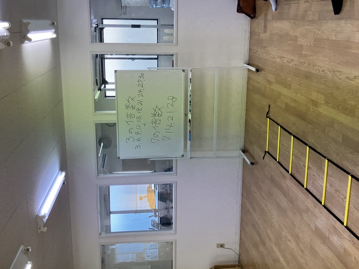 ラダーで脳トレ 2025年07月01日(火) ラダーという縄ハシゴのようなものを使い、脳トレをしました。 画像の通り、3と7の倍数で手を叩きながら歩きます。 歩き方もこちらが指示しますので、なかなかの難しさですが皆さん頑張ってやっていました。