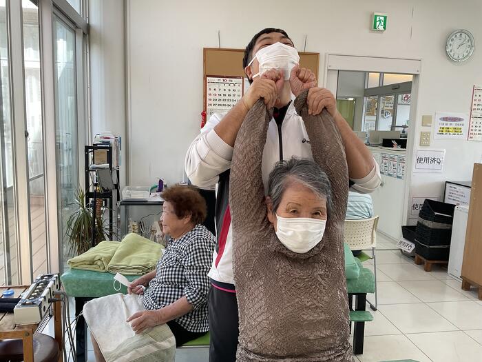 寒くて縮こまりがちな上肢をしっかりストレッチしていきます