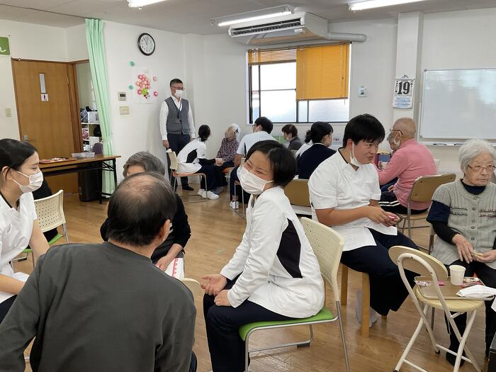 利用者さんたちは一緒に体操したり、会話を楽しんだりされていました