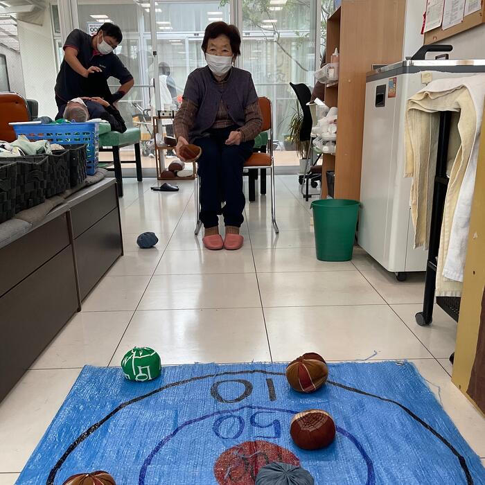 後からのお手玉に押し出されないように狙いを定めて投げていきます