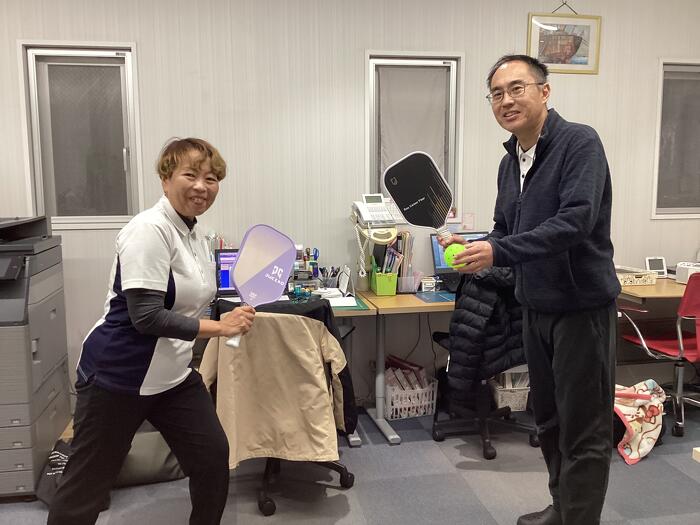 ピックルボール 2025年12月22日(月) 事務所にいつの間にか置いてあったピックルボールというもの。 バドミントンとテニスと卓球の要素を組み合わせたようなスポーツです。 この和かな写真のあと熱戦が繰り広げられました(笑)
