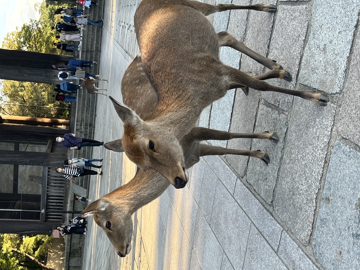 可愛い鹿さん 2024年10月26日(土) 奈良公園に行ってきました。観光客と鹿だらけでしたが鹿の可愛さにメロメロでした。 鹿せんべいをもらう前に必ずお辞儀をしてくれます。とっても礼儀正しいです。 写真の鹿はずっと2頭一緒にいました。親子なのか?夫婦なのか?仲睦まじい様子にほっこりしました。