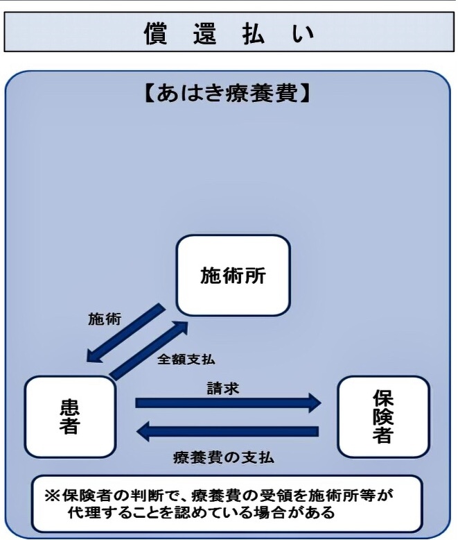 償還払い 2024年03月15日(金) 今日は医療保険の支払い方法の1つ償還払いについてお話しします。 償還払い(しょうかんばらい)とは、 治療家が施術を行い、その医療費を患者様から全額頂きます。 その後、患者様がそれぞれの保険者に医療保険の請求を行い、医療保険の負担割合分を引いた差額分の金額が払い戻される。制度です これから医療保険の法改正等があると思われます。その都度、皆さんにお知らせしていこうと思います