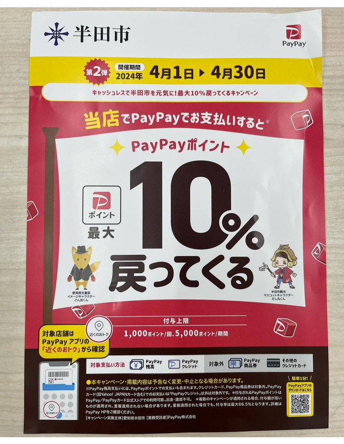 半田市ではPayPayキャンペーンが行われています。当院でも対応可能ですのでこの機会に是非、鍼灸治療も併せてお試し下さい????
