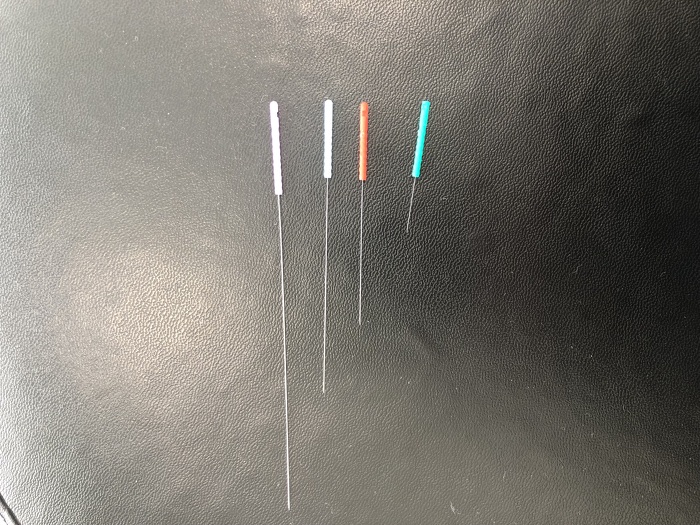 鍼灸の基本① 2024年04月11日(木) 今回は鍼灸治療で使う鍼のことについて書いていこうと思います。 当院で使う鍼は何種類かあり、患者様の体格や刺す部位によって使い分けます。 鍼の長さ 15㎜〜90㎜(全てを刺すわけでわありません) 鍼の太さ 0.12㎜〜0.30㎜ 例えれば 髪の毛の平均的な太さ0.1㎜〜まち針の太さ0.4㎜位の鍼を体に刺します。