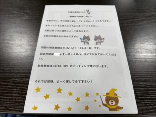 ようやく暑さが和らぎ、過ごしやすい気候になってきました。 なちゅらる訪看では、スタッフ間のコミュニケーションの促進や日々の業務から離れて気分転換をするきっかけづくりとして、 毎年秋に様々なレクリエーション企画を開催しています。 今年の企画は事務所内の間違い探しです。日々の訪問業務で、なかなか全員が事...