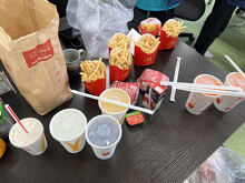 事務所ランチ 2024年03月11日(月) 今日も元気に安全運転で車を走らせ、訪問にうかがっています。 一日の予定はスタッフごとに異なるため、なかなか事務所に帰れない日もあります。 この日は珍しく、看護師やリハビリスタッフが揃って事務所でお昼ご飯を食べました。 メニューはマクドナルド!!!事務所はしっかり換気をしつつ、 お腹いっぱい食べて午後からの訪問も頑張りました!!
