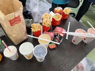 今日も元気に安全運転で車を走らせ、訪問にうかがっています。 一日の予定はスタッフごとに異なるため、なかなか事務所に帰れない日もあります。 この日は珍しく、看護師やリハビリスタッフが揃って事務所でお昼ご飯を食べました。 メニューはマクドナルド!!!事務所はしっかり換気をしつつ、 お腹いっぱい食べて午後から...